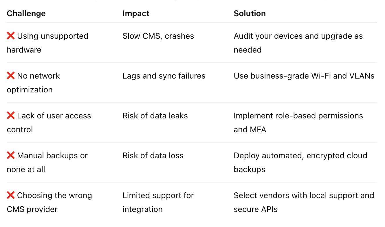 At Advance IT, we help clinics avoid these pitfalls with a full IT compatibility and security assessment before CMS rollout or upgrades.